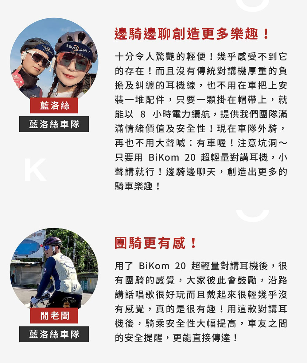 只要你有戶外溝通的需求,只要一副 BiKom 20,全都搞定!