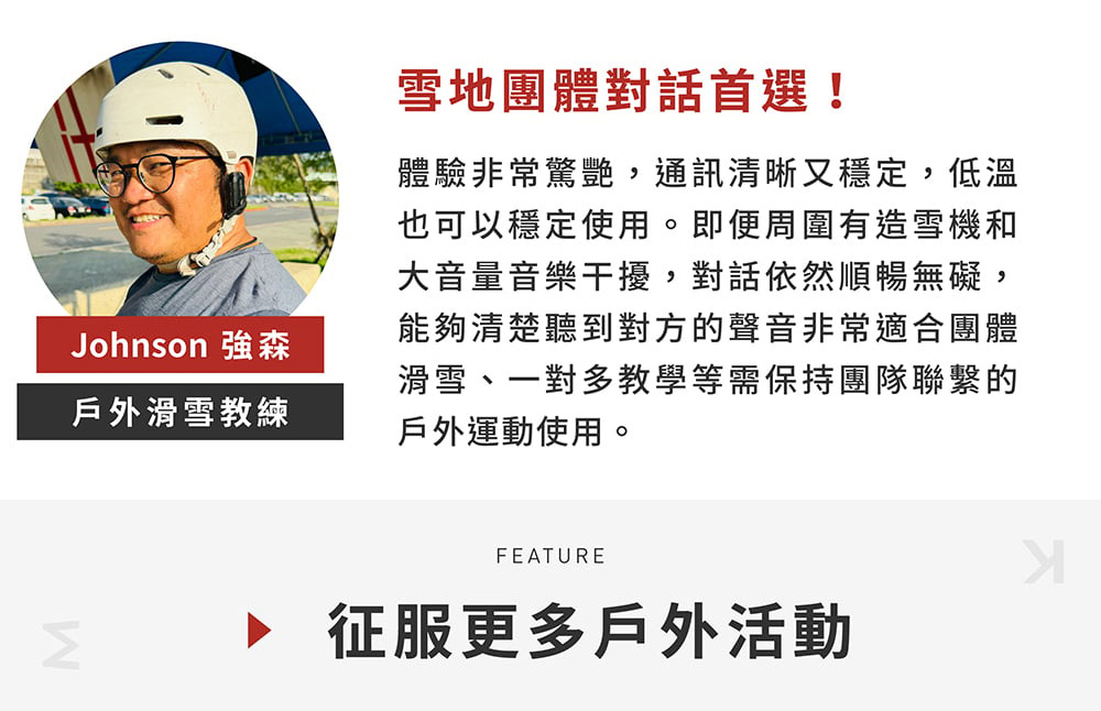 無論是團體滑行即時溝通、教練教學更清晰、請朋友抓拍耍帥瞬間通通沒問題!