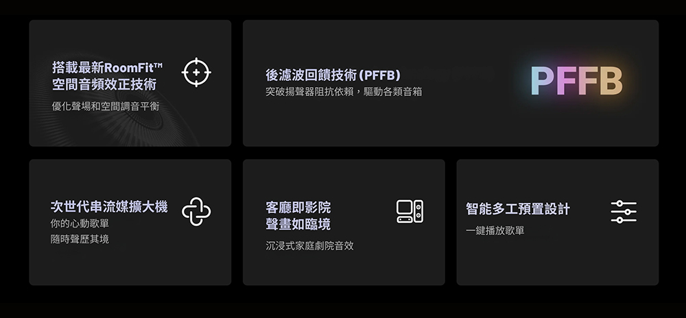 | 音頻輸入界面 | HDMI ARC, 光纖, RCA, USB 硬碟 | HDMI ARC, 光纖, RCA, 黑膠, USB 硬碟 | HDMI ARC, 光纖, RCA, USB 硬碟 |