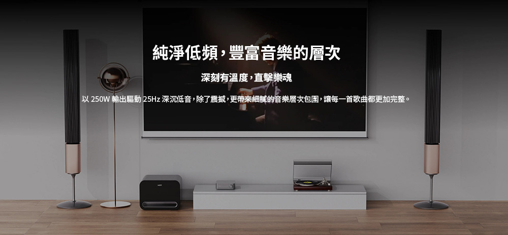 | 擴大機: | Class-D / 250W RMS 連續輸出功率 |